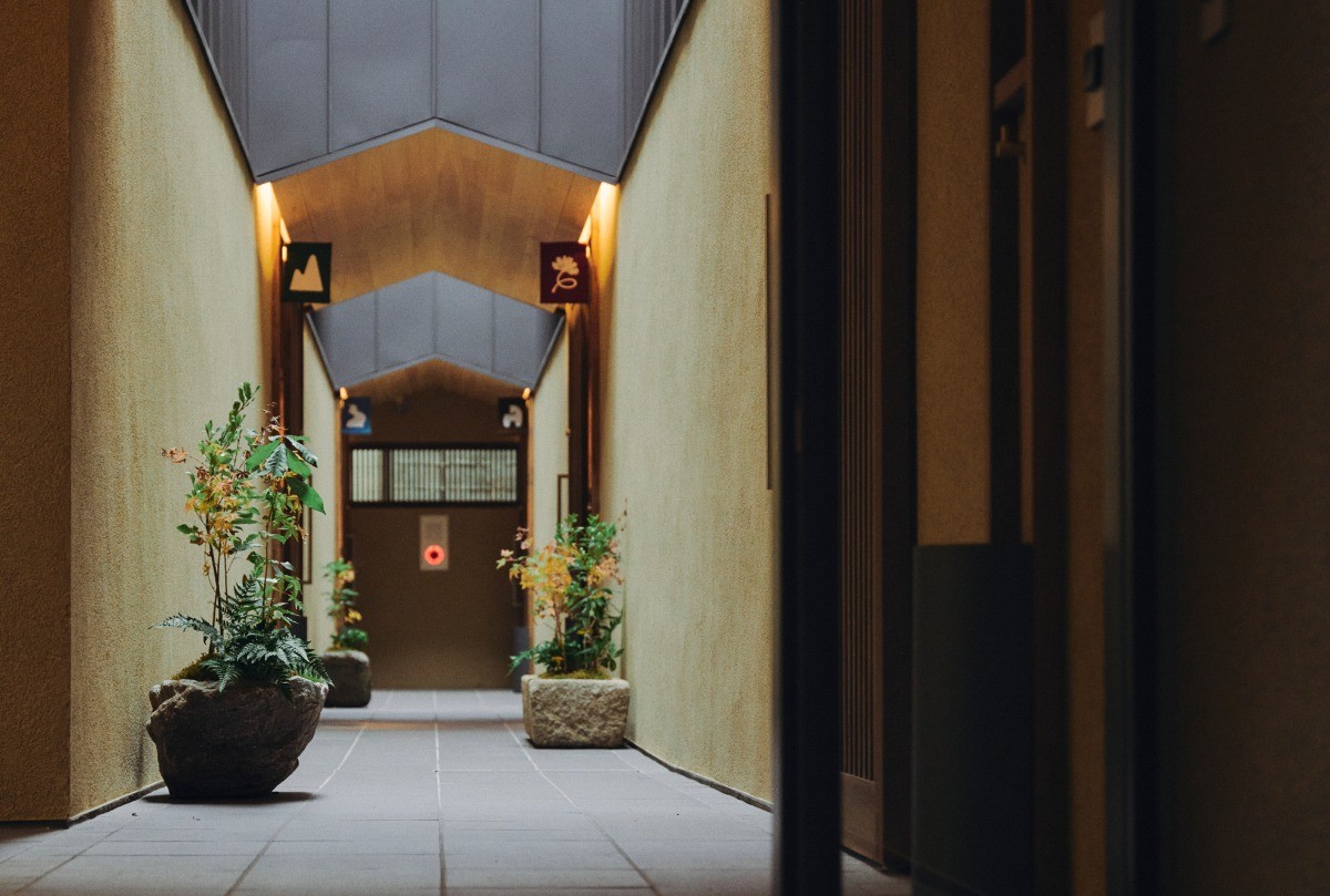 ルームサインは、京都を思わせるアイコンをデザインしてオリジナルの暖簾を作成しています。